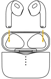 Put the earhhone into the charging case and close the lid,waiting for 2~3 secnonds to automatically shut down.