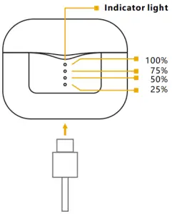 - Open the cover of the charging case,the indicator light of the charging case is on, L/R is automatically paired,and waiting to connect to the Bluetooth device;
