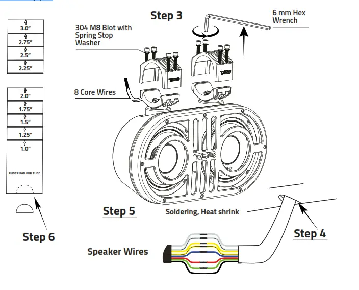 NOTE: The stainless steel hardware supplied with your speakers has been chosen to resist rust and corrosion. If the particular hardware supplied will not work for your installation purposes, please be sure to use only appropriate marine grade (stainless steel) mounting hardware.