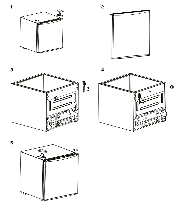 Attention: switch off the thermostat and remove the plug from the socket. Remove all items from the appliance, reversing the door opening.