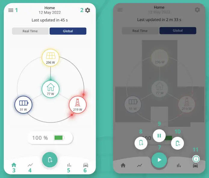 Shows current solar power (tap on the icon to view the solar energy today)