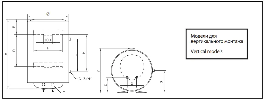 Ø | MODEL | A | B | C | D | E | F | L | M | X | Y | Z | T |