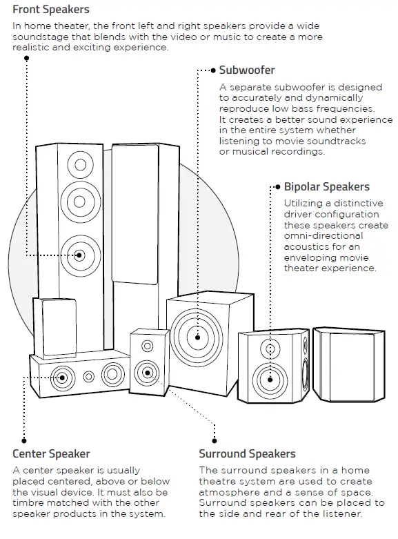 Achieving great sound in a home entertainment system is inherently more complex than with stereo systems, because there are six to twelve (or more) speakers to set up, rather than just two. No matter what speaker configuration you choose, our guide to home theater surround sound setup will help you place and configure your speakers for the best possible sound.