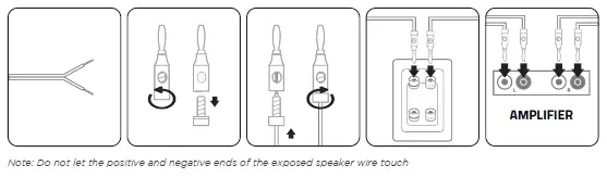 - Ensure positive/negative speaker wire does not touch; this can lead to blowing a fuse or shorting out your amplifier/home theater receiver.