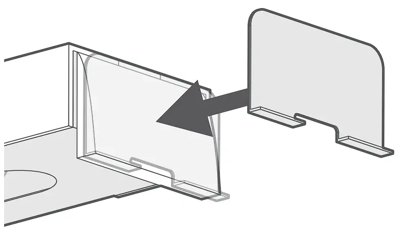 To fit them, peel the covers from the sticky pads on the back, then stick one to each end of the Click2Fit™ rail, as shown.
