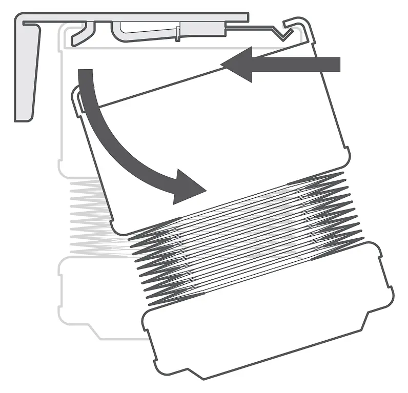 To release the blind from the brackets at any point after installing, push firmly against the blind’s headrail and twist the back of the headrail downwards to release it from the back of the brackets.