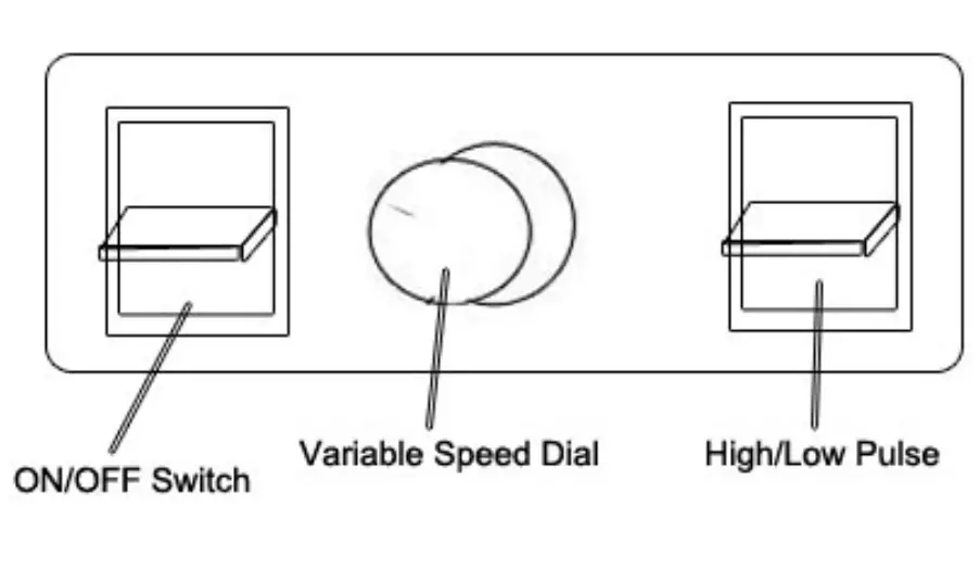 Up for High speed at 29000rpm; Down for Low speed at 16000rpm. Pulse button can only used when the power switch is ON, The PULSE switch can be used to quickly refresh product in the container by depressing the switch and holding down as long as needed.