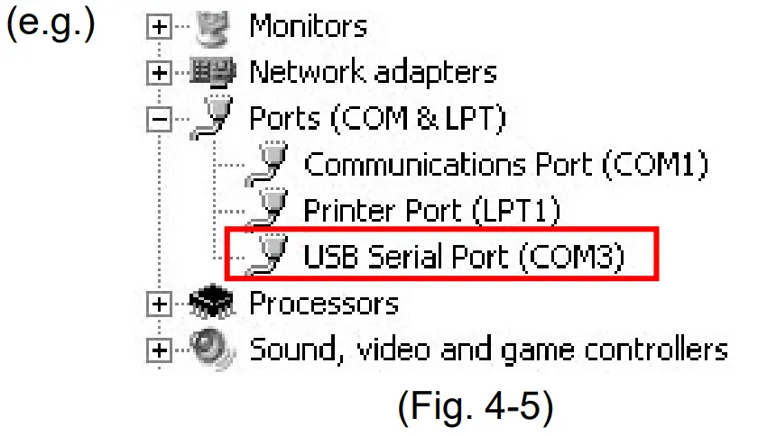 If [USB Serial Port (COM3)] appears, COM port has been allotted No.3.