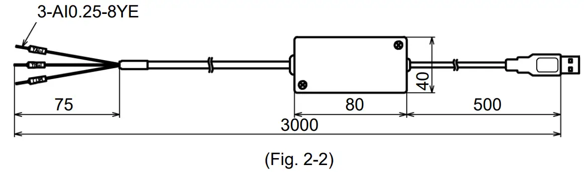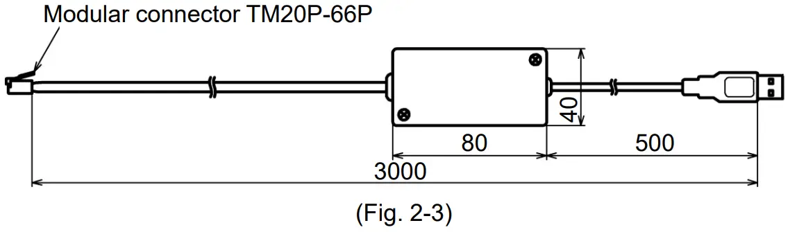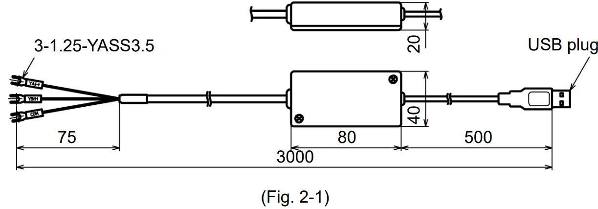 | Connector spec | PC side: USB plug (Type A) Instrument side: RS-485 (Y-type terminal, Ferrules, Modular connector) |