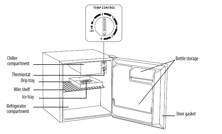 - The first time you turn the refrigerator on, adjust the thermostat to “6” and run for at least two hours before putting food in.