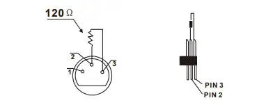 For installations where the DMX cable has to run a long distance, or is in an electrically noisy environment, it is recommended to use a DMX terminator. This helps in preventing corruption of the digital control signal by electrical noise. The DMX terminator is simply an XLR plug with a 120 Ω resistor connected between pins 2 and 3,which is then plugged into the output XLR socket of the