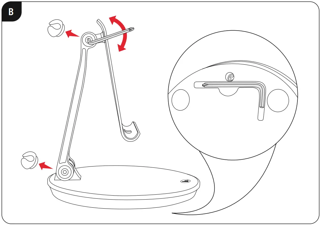 The angle of the holder can be adjusted using the Allen key, which is located on the underside of the holder. (see Figure B)