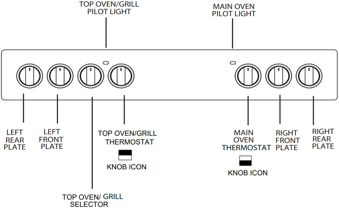 There should always be at least 25mm (1in) between the top of the food and the grill element. Warning: Items stored in top oven will get hot when main oven is in use.