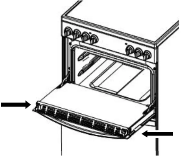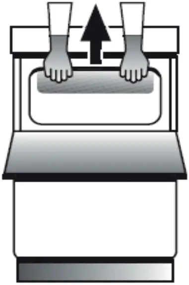 Open the grill door sufficiently to allowa comfortable grip on the underside front edge of the oven roof, avoiding any grill elements
