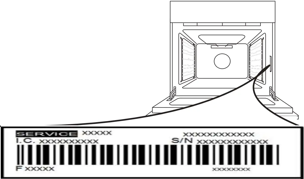 - the assistance code (the number following the word SERVICE on the identification plate attached to the product, which can be seen on the inside edge when the oven door is open);