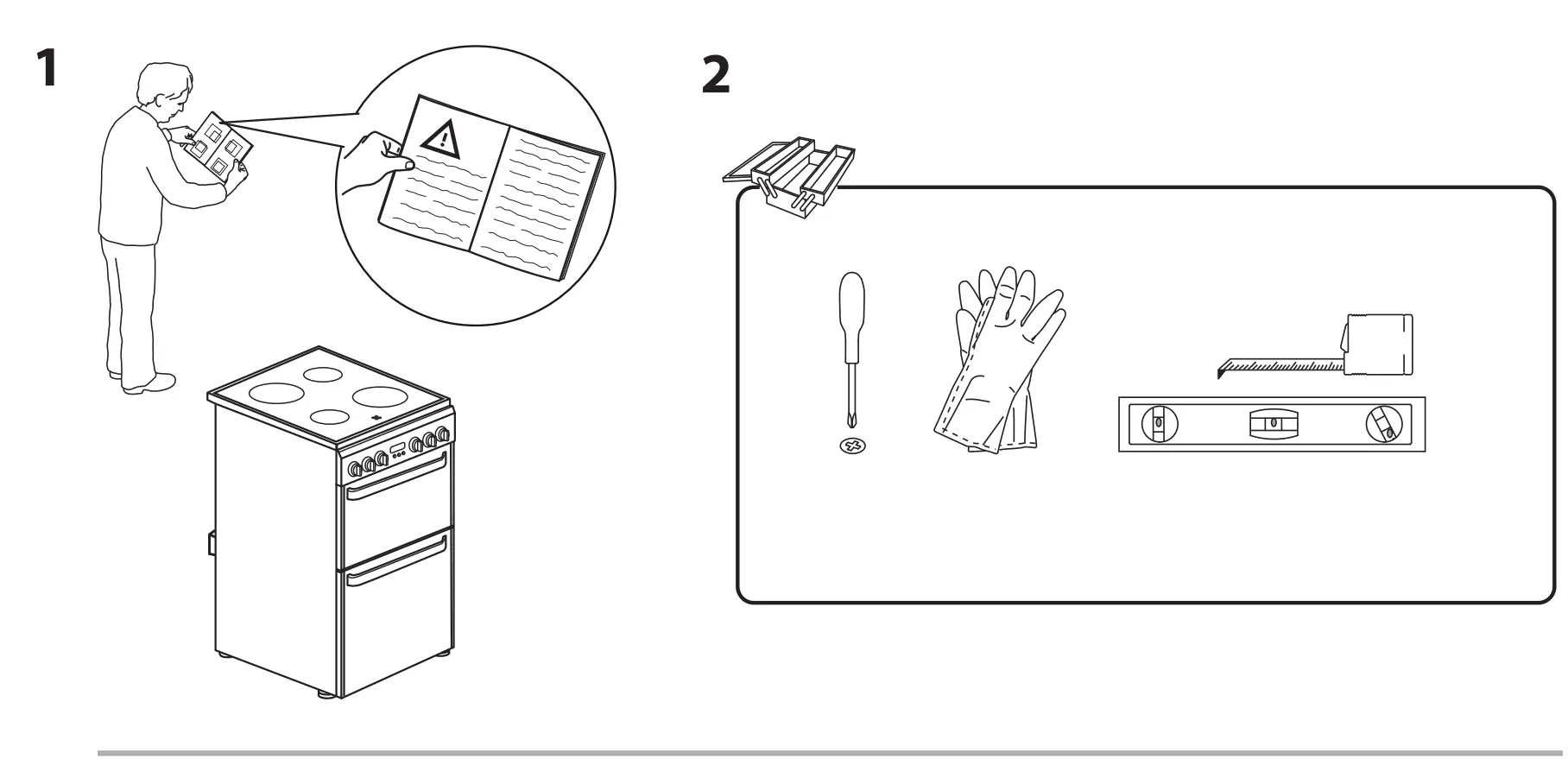 The appliance must be handled and installed by two or more persons – risk of injury. Use protective gloves to unpack and install – risk of cuts.