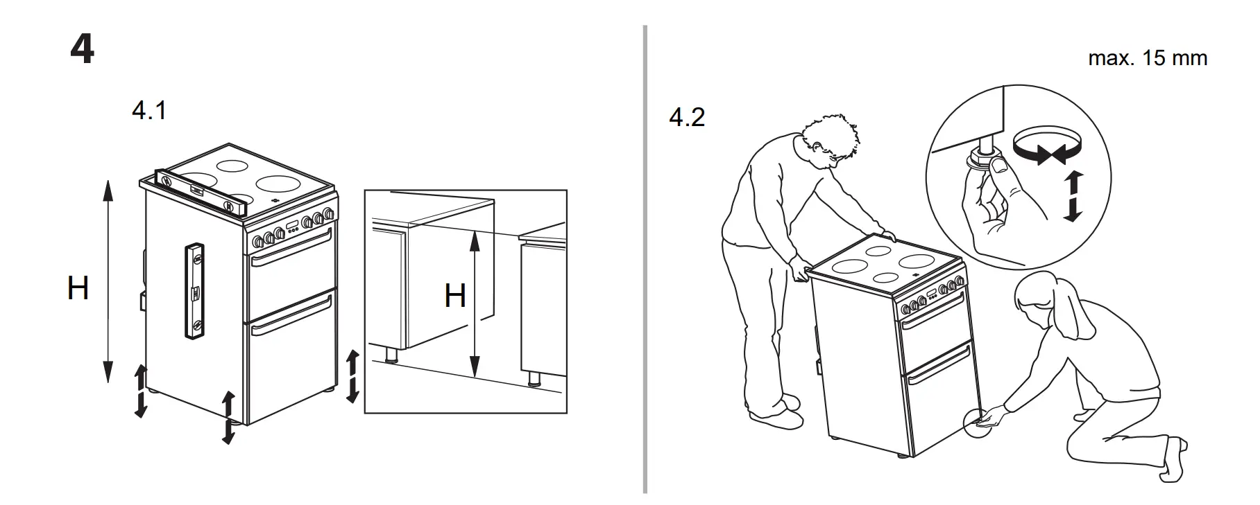 Before moving your cooker check that it is cool, and switch off at the cooker control unit. Movement of your cooker is most easily achieved by lifting the front as follows: