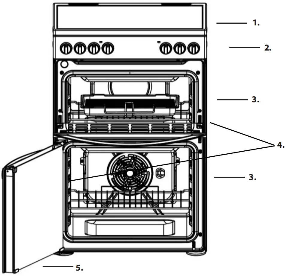 Never use more than 4 shelves in the oven as air circulation will be seriously restricted.To ensure oven circulation do not use meat pans larger than 390 x 300mm (15″x12″) and baking trays no larger than 330 x 255mm (13″x 10″), these should be positioned centrally on the oven shelf. Food should not be placed directly on the floor of the oven. To avoid unnecessary cleaning, rod shelves which are not in use, should be removed from the oven.