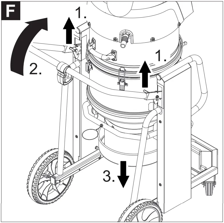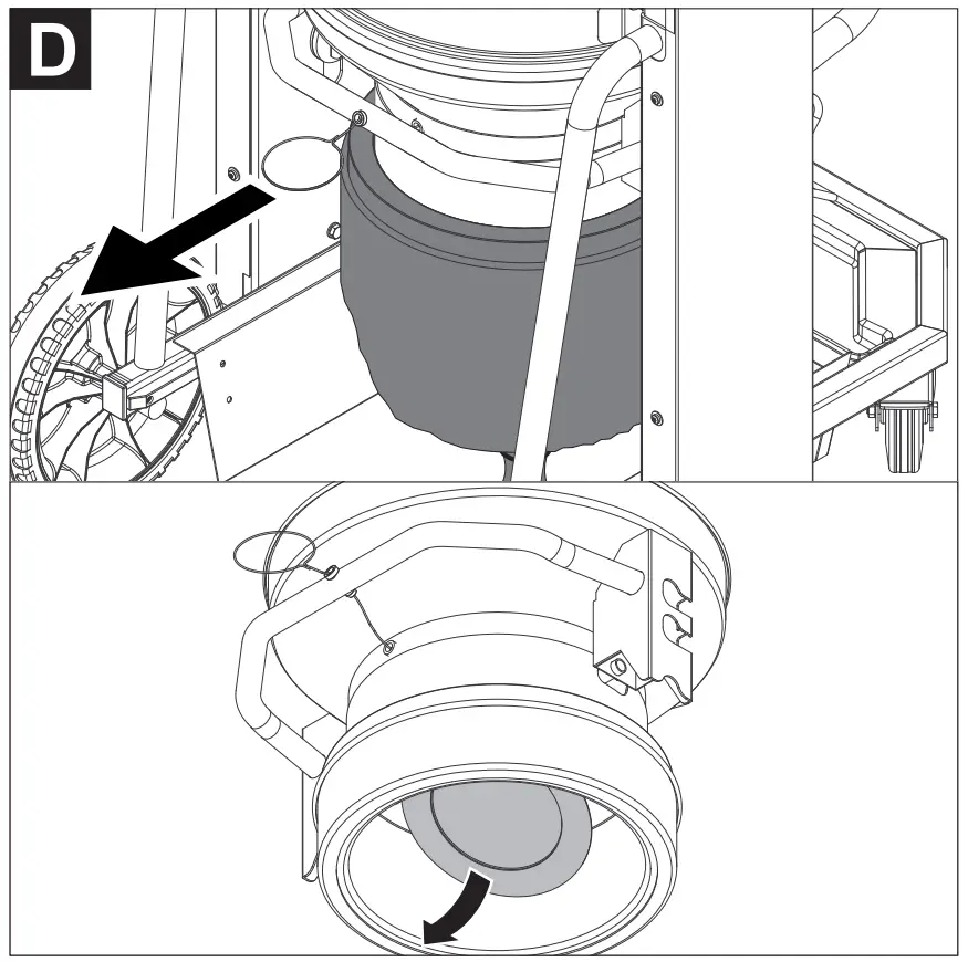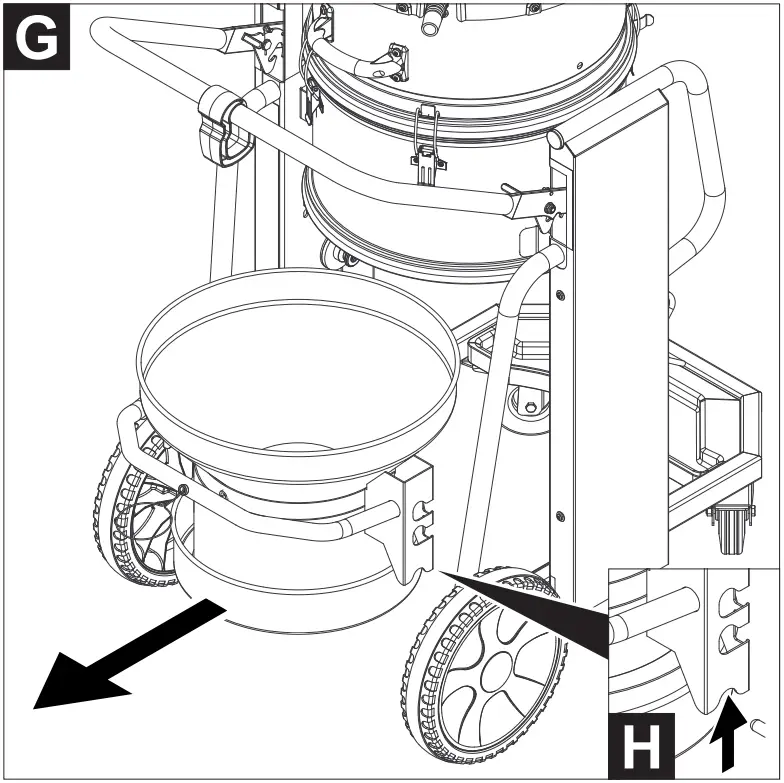 Crush hazard. Never hold your hands between the disposal system and the intermediate ring or put them near the lifting mechanism while locking. Hold the disposal system on the handle with one hand and lock it by operating the push handle with the ot er hand.