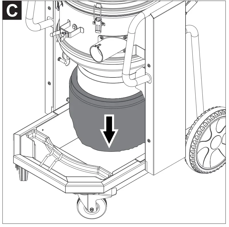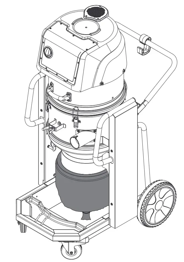 – This disposal system is intended for the low-dust disposal of dry or slightly moist vacuumed material while using a waste hose that can be cut to length.