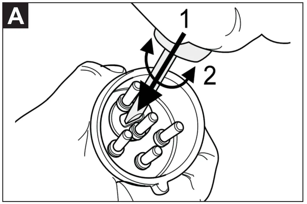 ➜ With light waste or in case of clogging: Pull out the sheathed cable to open the flap on the outlet (only possible when the device is switched off).
