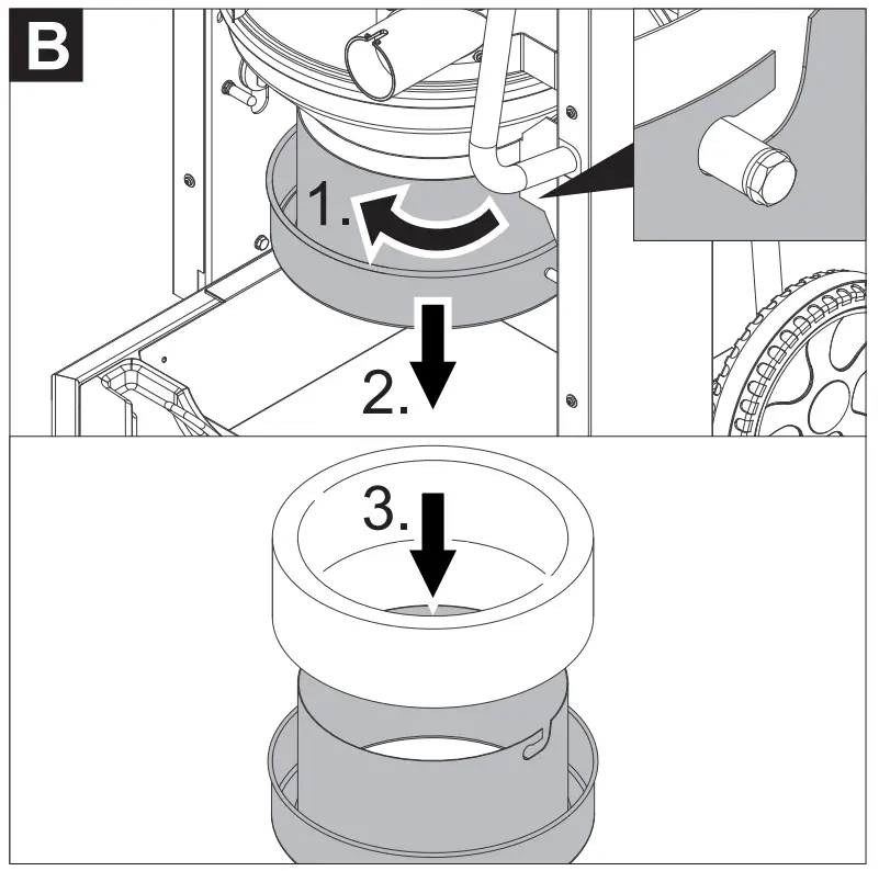 ➜ Open the intake by a rotation to the left and pull it out towards the bottom.