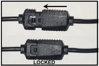Note: Look inside the cap to identify if it’s a Loop Cap or End Cap. Loop Caps will have pins inside, End Caps will be empty with no pins. - Use caution when connecting the mating ProGLOWTM accessory connectors, confirm the mating connector is connected correctly or damage will occur to the lighting accessories. The locking tab should slide on-to the lock and lock into position. See Photos below.