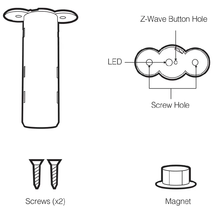 The Recessed Door Sensor GEN7 is comprised of two parts:” the larger Main Sensor and the smaller Magnetic Sensor. Both of them are to be installed for proper use.