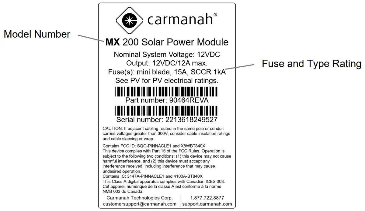 Each Carmanah MX 200 Solar Power Module has the following parts: