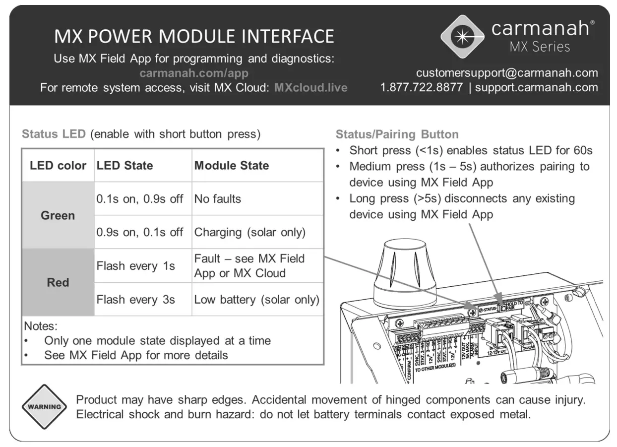 TO COMPLETE SETUP: Use MX Field App to program/link modules and change default settings. Download: carmanah.com/app