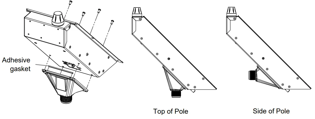 - Install onto pole mount with accompanying kit and follow the included kit instructions.