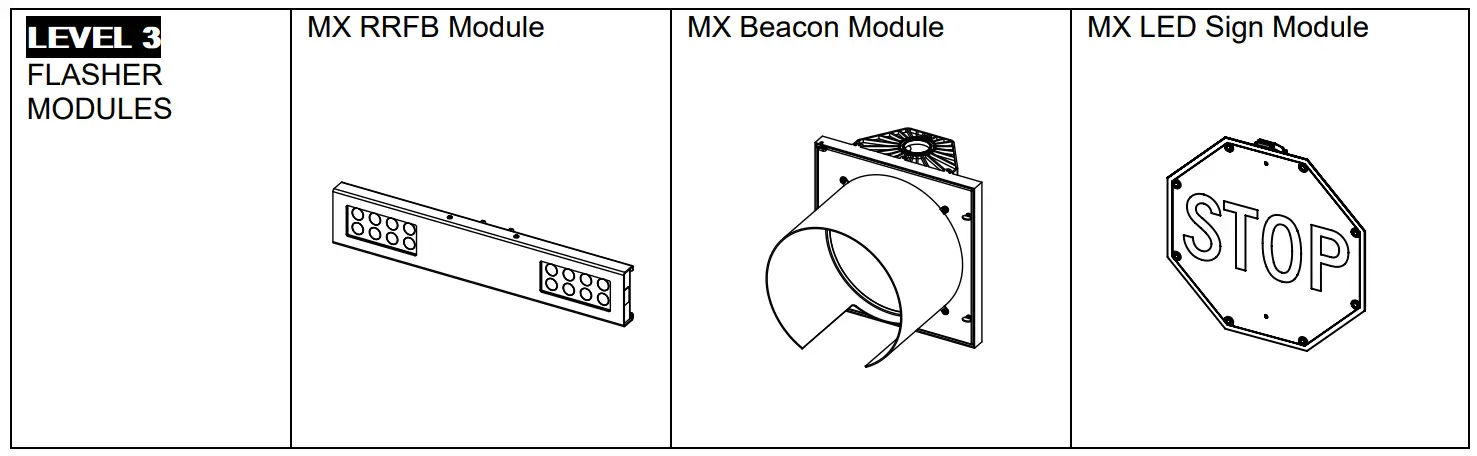 - MX RRFB/Beacon/LED Sign Modules (referred to as flasher modules)