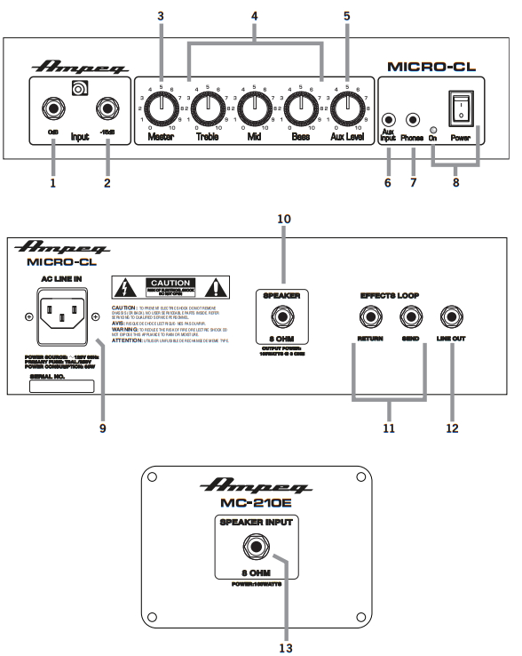 - Speaker Input: 1/4″ TS input for connecting to MICRO-CL head.