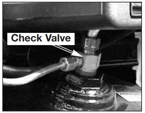 - Unscrew the check valve (turn counterclockwise) using a 7/8” open end wrench. Note the orientation for reassembly.