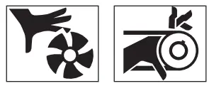 | MOVING PARTS SUCH AS THE PULLEY, FLYWHEEL, AND BELT CAN CAUSE SERIOUS INJURY IF THEY COME INTO CONTACT WITH YOU OR YOUR CLOTHING. ATTEMPTING TO OPERATE COMPRESSOR WITH DAMAGED OR MISSING PARTS OR ATTEMPTS TO REPAIR COMPRESSORS WITH PROTECTIVE SHROUDS REMOVED CAN EXPOSE YOU TO MOVING PARTS AND CAN RESULT IN SERIOUS INJURY. | NEVER OPERATE THE COMPRESSOR WITH GUARDS OR COVERS THAT ARE DAMAGED OR REMOVED. ANY REPAIRS REQUIRED ON THIS PRODUCT SHOULD BE PERFORMED BY AUTHORIZED SERVICE CENTER PERSONNEL. |