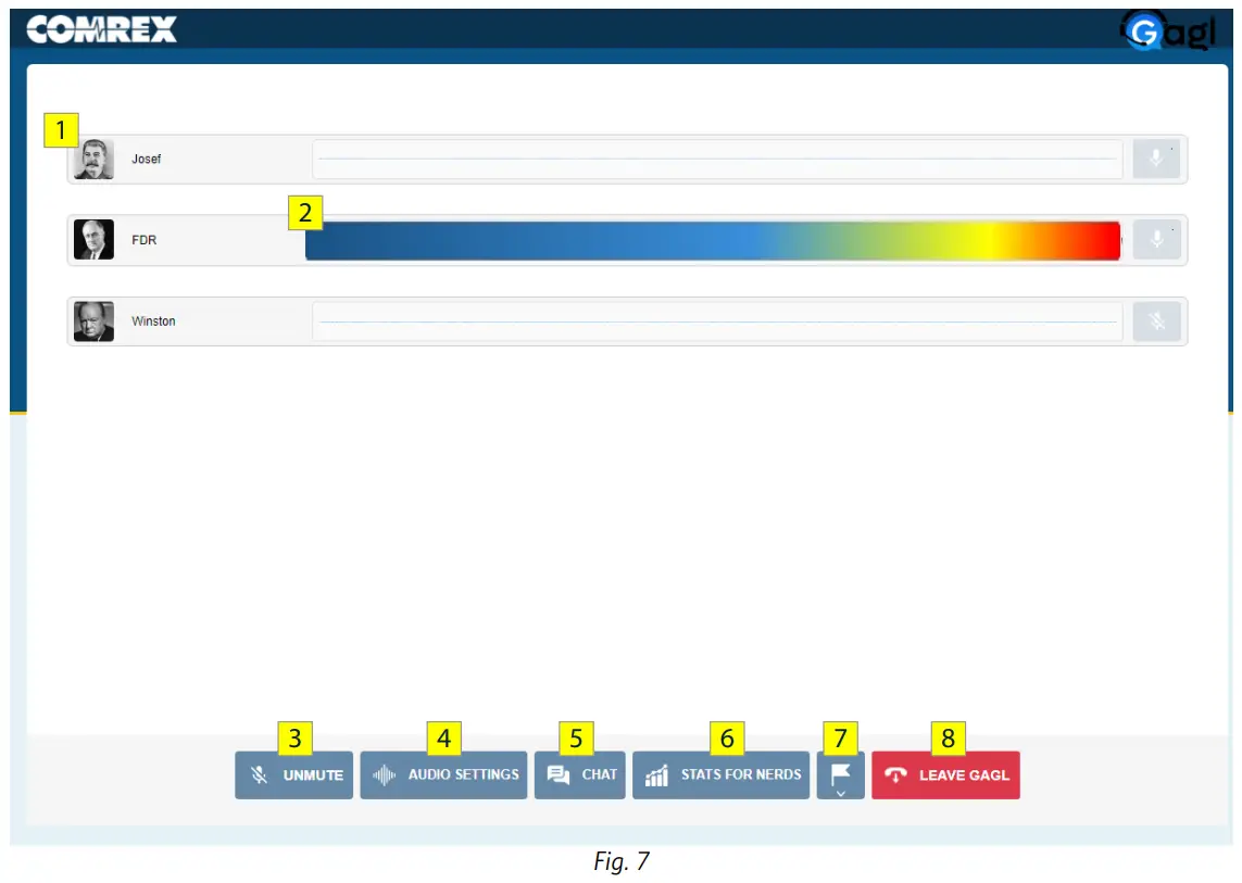 - Audio Meter: When a Gagl participant speaks, their audio will be reflected here.