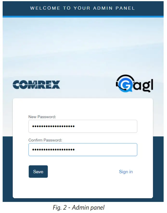 You’ll receive instructions from Comrex on how to set up your Admin account on the Comrex billing site. Once that’s complete, you’ll receive an email from Gagl to your Admin email account. This email will contain a link to allow you to create your Admin Gagl account. (Fig. 2)