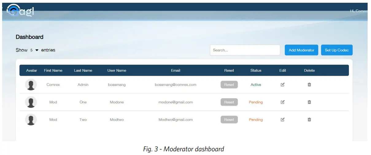 Once you have Moderator credentials (or if you’re the Admin), log into Gagl at gagl.comrex. com. Note that you must log in with the user name assigned to you rather than your email address.