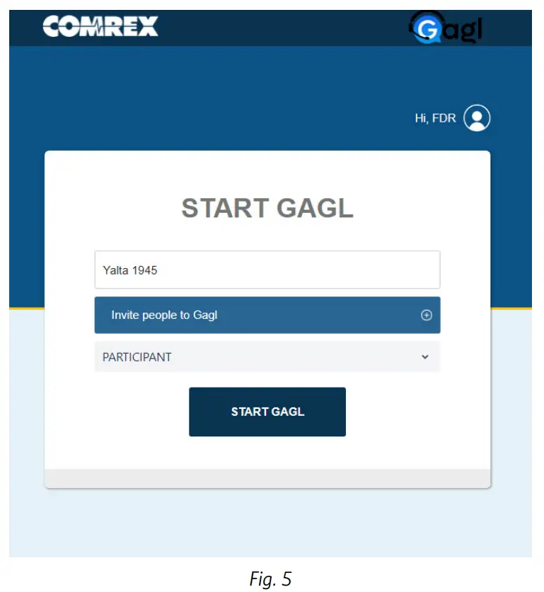 You have a choice of inviting Guests here (Fig. 5), or after the Gagl is created on the next screen. If you want to issue invites now (e.g. for a future Gagl), click “Invite people to Gagl”, and enter their names and emails. When complete, they will receive an email link to join as a Guest.