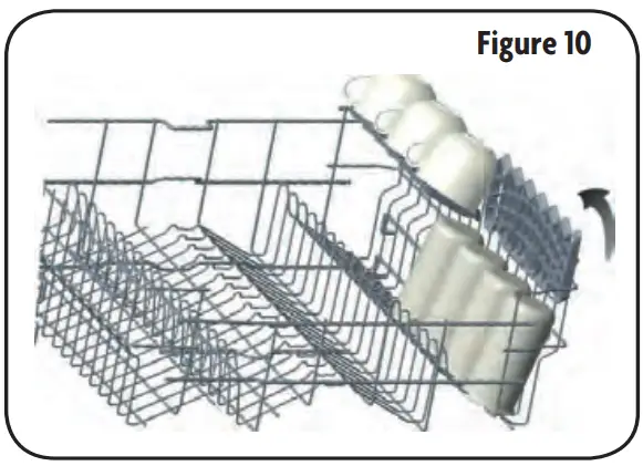 - The cup racks are designed to support cups, glasses and kitchen utensils. When the cup racks are in the dishwasher do not lean on or use the cup racks to support your body weight.