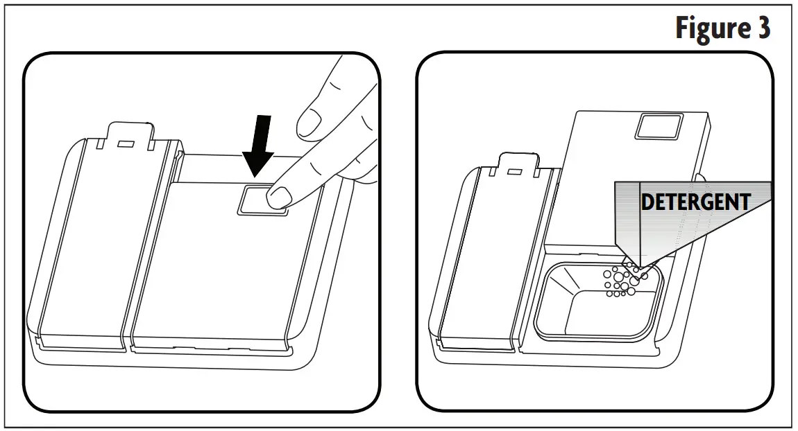 Dishwasher detergent is necessary to remove food from dishes and help move it out of the dishwasher. Only use detergents that are specifically made for dishwashers. Fill the detergent dispenser before the start of each wash per the instructions provided in the Wash Cycle Table. ALWAYS add the detergent just before starting the dishwasher to avoid it getting wet as that may prevent it from dissolving properly