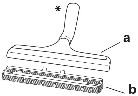 - The smooth flooring nozzle with slits* with the removable row of bristles (a+b).