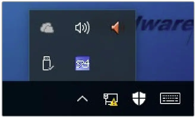 - Now that the desktop is visible, tap on the `up’ arrow in the Windows tray.