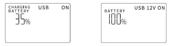 - The screen will display the battery level in real-time. When the product is charged fully, ‘100%’ will be displayed on the screen.