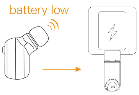 - When the voice prompts “battery low”, the headset needs to be charged. When it’s being charged, the blue light will come on. When it’s fully charged, the blue light will go out.
