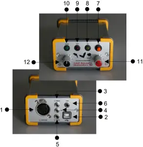 This amber colored LED will flash once the device is connected to the PC. It will be switched off once the RECORDER USGH software is running in the monitoring mode. In this mode, the REC LED indicates whether the RECORDER software is recording the incoming data onto disk.