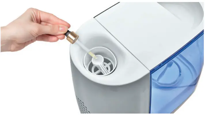 - Soak the removable mist chamber in a solution of equal parts white vinegar and water for 20 minutes. Rinse thoroughly and then wipe dry with a soft, clean cloth.
