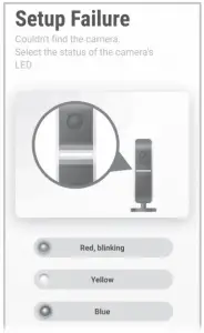 | The camera’s LED indicator is lit in blue. | The WPS button was pressed on another router which is different from the router your mobile device is connected with. |