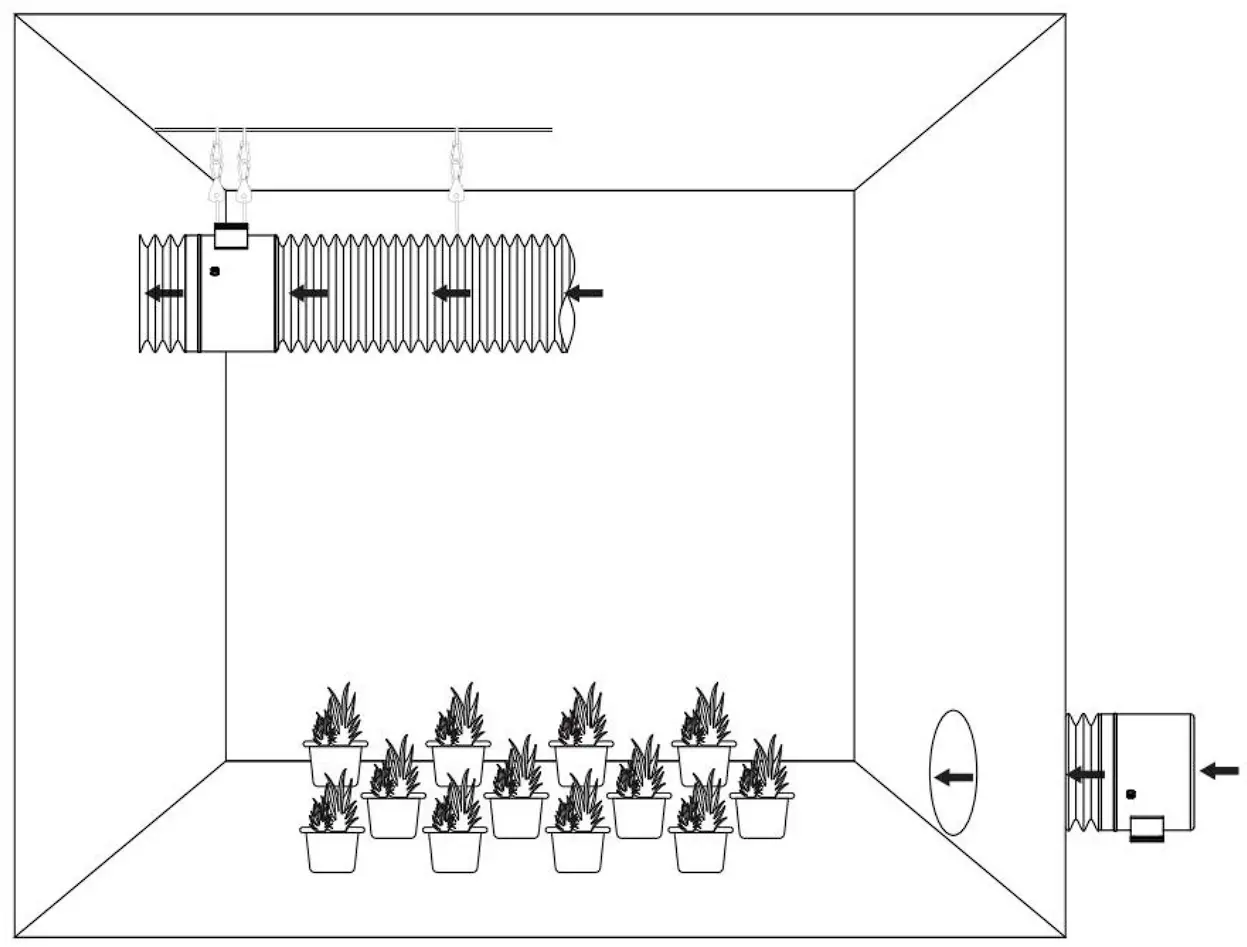 If it is NOT used as a fan, it must be situated at a bottom corner of your grow space - Used as the exhaust fan: