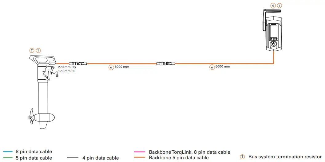 Torqeedo data cable 8 x diameter Torqeedo power cable 8 x diameter Earth cable see cable manufacturer’s specifications Other power cables see cable manufacturer’s specifications